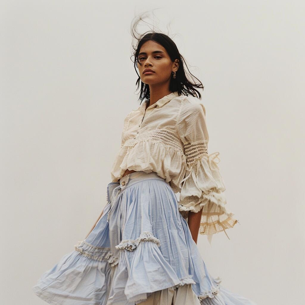 Whispers of silk caress the wind, weaving tales of fashion divine.